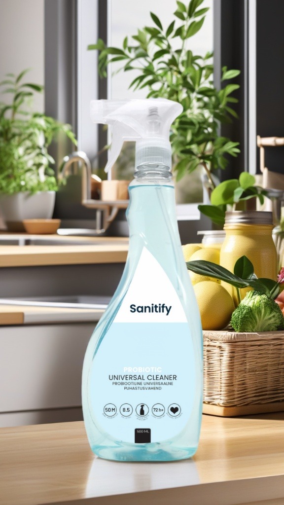 Sanitify probiootiline universaalne puhastusvahend on tõhus kontsentreeritud lahendus, mis sobib ideaalselt igapäevaseks puhastamiseks kõikidele pestavatele pindadele, sealhulgas mööbel, seinad, põrandad ja autosalongid. Pärast puhastamist jätab see pindadele kasulikud probiootilised bakterid, mille positiivne mõju kestab kuni 72 tundi. Need bakterid aitavad luua pindadel tasakaalustatud mikrofloorat, mis toetab tervislikku elukeskkonda, vähendades niiskust ja eemaldades ebameeldivaid lõhnu.