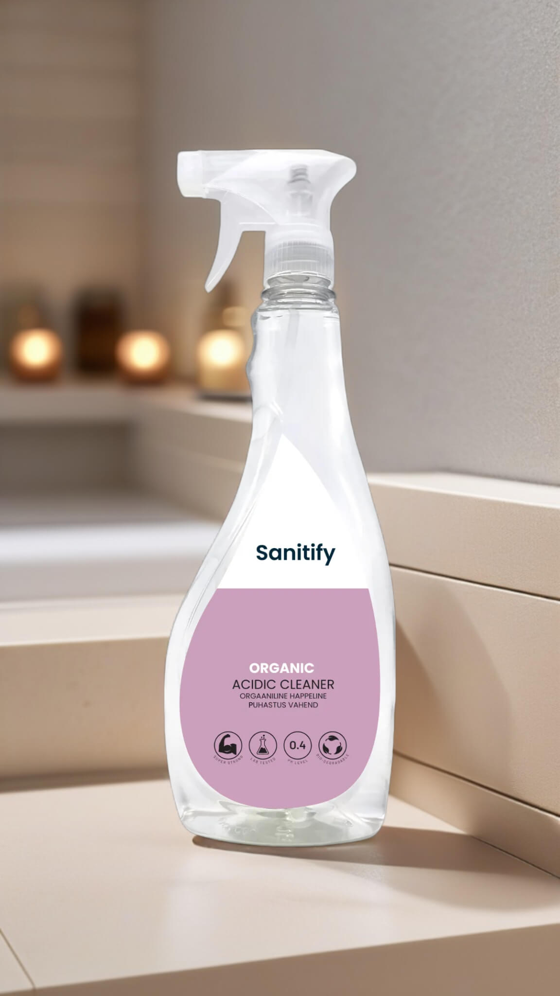 Sanitify orgaaniline happeline puhastusvahend on ökoloogiline ja efektiivne lahendus, mis põhineb orgaanilistel sooladel ja eemaldab tõhusalt katlakivi, rooste, lubja, hallituse ja oksiidide jäljed. See sobib suurepäraselt sanitaarruumide regulaarseks puhastamiseks ning on ideaalne ka pesumasinate, veekeedukannude ja muude katlakivi koguvate seadmete puhastamiseks. Orgaaniline puhastusvahend annab roostevabale terasele, klaasile ja kristallesemetele kauni läike, pakkudes keskkonnasõbralikumat alternatiivi keemilistele puhastusvahenditele.